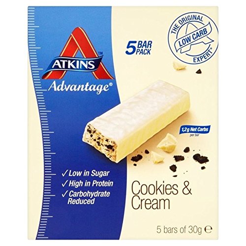 -. Binding : Misc. -. Brand : Atkins -. EAN : 0721865806315 -. Feature : Atkins Advantage Cookies & Cream bars 5 x 30g / Quantity: 1 -. Label : Atkins -. LegalDisclaimer : Please be aware that unless expressly indicated otherwise, product packaging may vary from what is shown on this listing. We recommend that you do not rely solely on the information presented on our listing. Please always read the labels, warning and directions provided before using or consuming the product. -. Manufacturer : Atkins -. MPN : OC28149201 -. PackageQuantity : 1 -. PartNumber : OC28149201 -. ProductGroup : Grocery -. ProductTypeName : GROCERY -. Publisher : Atkins -. Studio : Atkins -. Title : Atkins Advantage Cookies & Cream bars 5 x 30g -. UPC : 721865806315