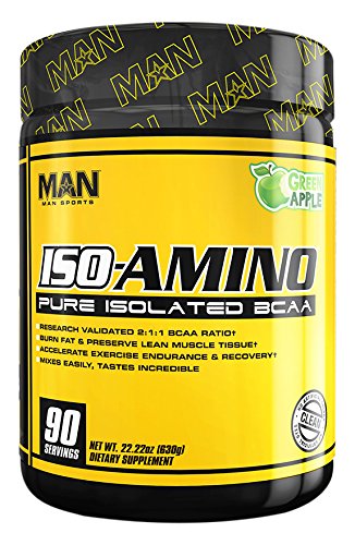 Branched Chain Amino Acids or BCAAs are comprised of 3 key amino acids for building and repairing muscle. Those amino acids are Leucine, Iso-Leucine and Valine. ISO-AMINO is the best BCAA product packing 5 grams of pure isolated BCAAs per serving in a scientifically researched and PROVEN 2:1:1 ratio. No fluff, no fillers and no added artificial colors or dyes. BCAAs are everything you need to build, repair and trigger lean muscle growth. ISO-AMINO can be taken throughout the day and is especially useful intra-workout to speed recovery. Try one of the many delicious, ultra-unique flavors and you will not be disappointed! ISO-AMINO by MAN Sports utilizes advanced flavor technology to provide you out of this world flavor!Feature