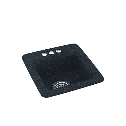 Swaoi|#Swanstone BS01515.015-3 15-In X 15-In Solid Surface Bar/Prep Sink 3-Hole, Black Galaxy,