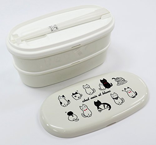 OSK Chat noir et blanc Black Cat 2 stage Lunch Bento Box w/ Partition White PW-7