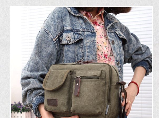 I. Square Multi Compartment Canvas Messenger Shoulder Bag