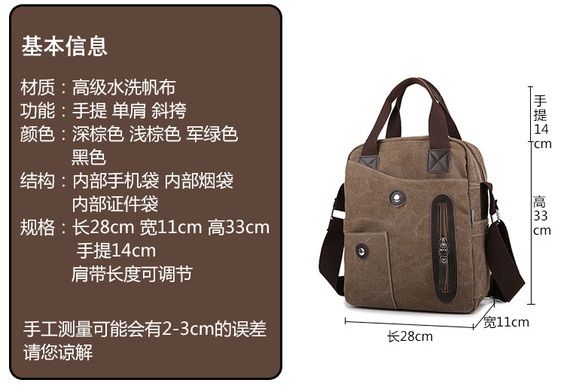 Canvas Handbag Messenger Briefcase Shoulder Latpop Bag