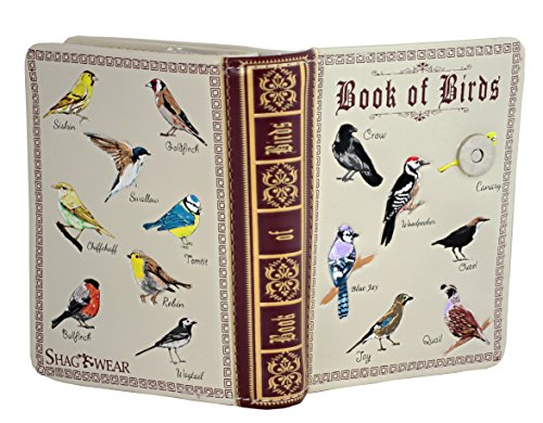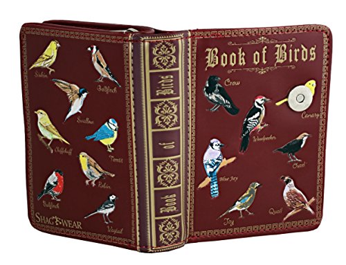 Binding : Apparel Product Description This uniquely designed Book of Birds wallet will make a statement where ever you go. Holds your cash and cards securely. Features 4 credit card slots, 1 ID card slot, 1 large money pocket, an exterior magnetic snap closure and a large zippered back pocket with divider. Made of faux leather and measures 4 x 4.5 x 1 in. 0