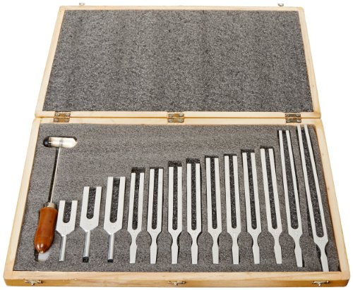 United Scientific TFBOX13 Tuning Fork Wooden Box Set With Mallet, 13 Forks