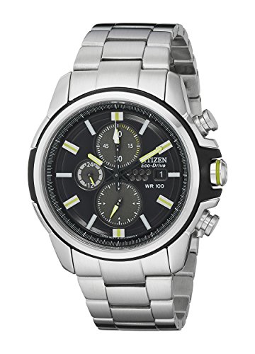 Sport a striking, bold style with this AR 2.0 watch from DRIVE by Citizen Eco-Drive. It features a black dial with contrasting baton indices protected by durable mineral crystal. The stainless steel bracelet complements a stainless steel case with a proprietary chroma finish.