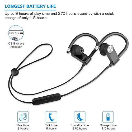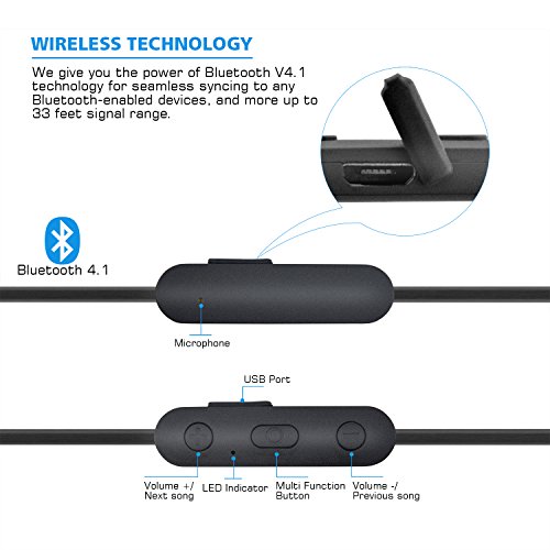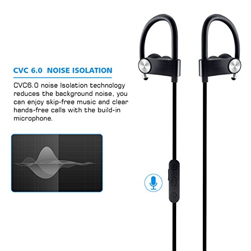 ✓ HIGH FIDELITY SOUND QUALITY - The best wireless headphones featuring latest Bluetooth 4.1 CSR + EDR APT-X audio decode technology that produce incredible sound quality with deep bass and crystal clear treble. CVC 6.0 noise Isolation technology reduces the background noise, you can enjoy skip-free music and clear hands-free calls with the build-in mic from up to 33-feet away in open space.