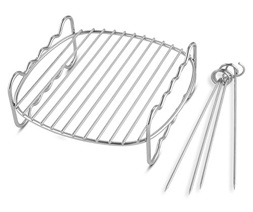 - BEST AIRFRYER ACCESSORIES - Double layer accessory for more versatile airfryer recipes. You have more space to cook larger quantities: use skewers for shish kabob on the top layer and other foods on the grate layer