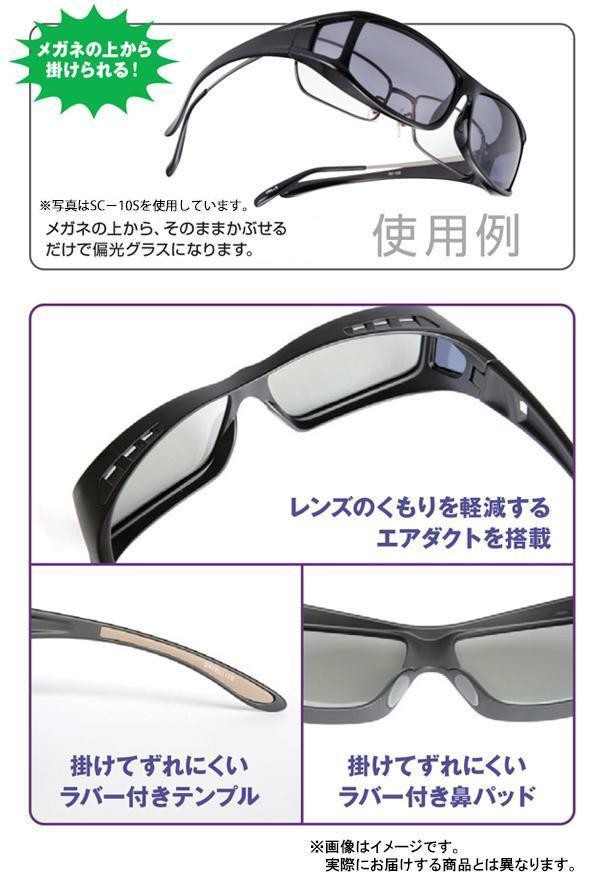 | メガネの上からかぶせるだけで偏光サングラスに変身!! |