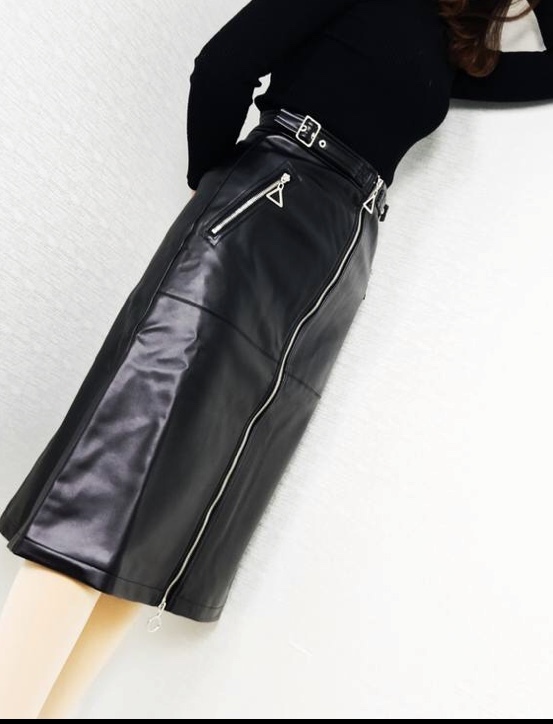 モノトーンな辛めなレザーのタイトスカートで大人です♡
