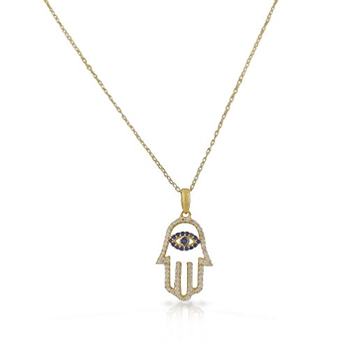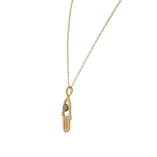 -. Binding : Jewelry -. Brand : Anguss Fashion Jewelry -. Department : girls -. Feature : Length (inches):18 / Yellow Gold-Tone White Blue CZ Hamsa Hand Pendant Necklace Get ready for a dual design necklace that is both meaningful and fashionable. Featuring both Evil Eye and Hamsa design this gold blue and white toned pendant makes for the perfect gift for a Bat Mitzvah or other spiritual holiday. You won't be disapointed with this unique necklace. -. Label : Anguss -. Manufacturer : Anguss -. Model : 281901162622 -. MPN : 281901162622 -. PartNumber : 281901162622 -. ProductGroup : Jewelry -. ProductTypeName : FASHIONNECKLACEBRACELETANKLET -. Publisher : Anguss -. Studio : Anguss -. Title : Gold Tone White Blue CZ Hamsa Hand Pendant Necklace
