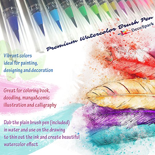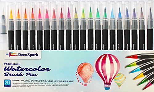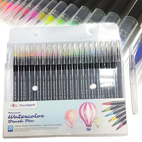 Watercolor Brush Pens Set | 20 colors | Best Real Soft Brush Markers for Adult and Kids Coloring Books, Drawing, Calligraphy, Writing and more | Ultra Bright Pigment, Non-Toxic, Acid-Free | DecoSpark
