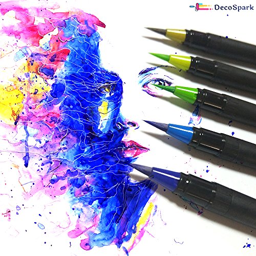 - HIGH-QUALITY REAL BRUSH TIP: The high-quality real brush tip of DecoSpark watercolor markers allow you to create the endless detailed shapes and fine lines. The tips are extremely flexible yet very durable and keep its shape for even after lots of use.