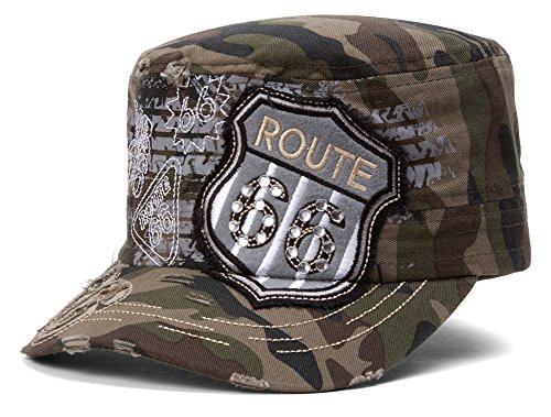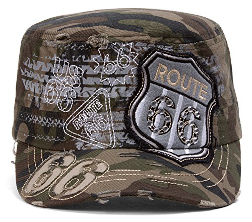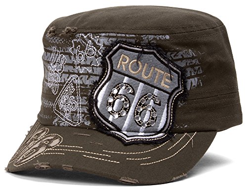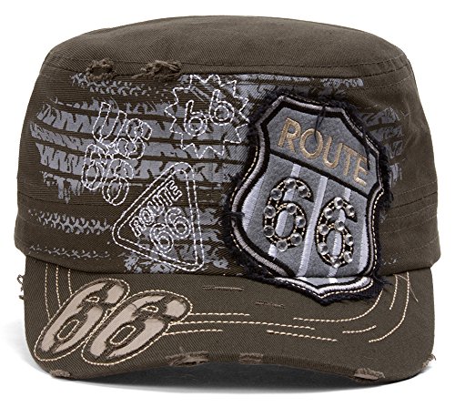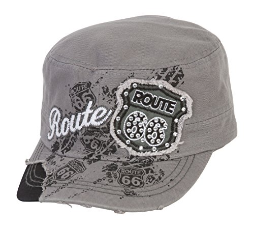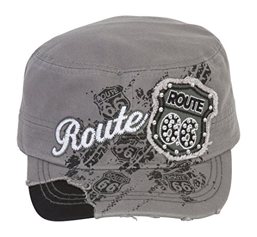 (HLC)/Accessories/Hats/DIRECT FROM USA/TopHeadwear Route 66 Grey Distressed Cadet Cap