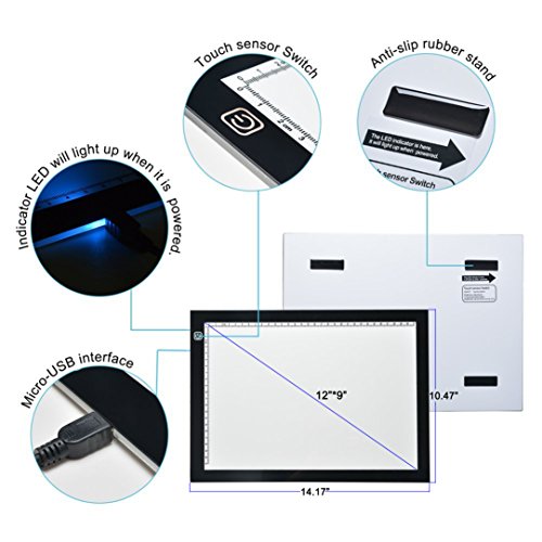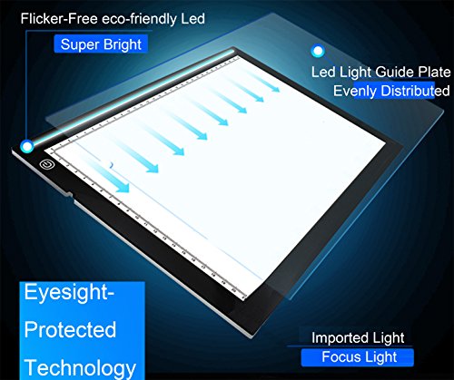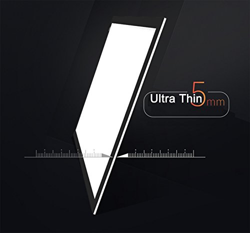 - PORTABLE & ULTRA SLIM- The thickness is only 5mm which makes it portable. The illumination is perfectly even, super bright, and flicker-free