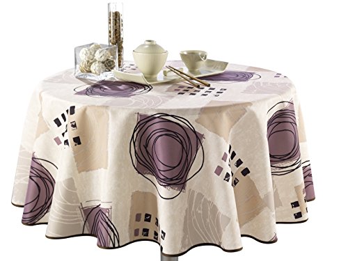 -. Title : Tablecloth, Stain Resistant, Spill Proof, Liquid Spills Beige "Purple Circle"
