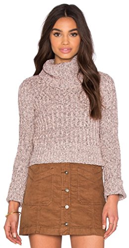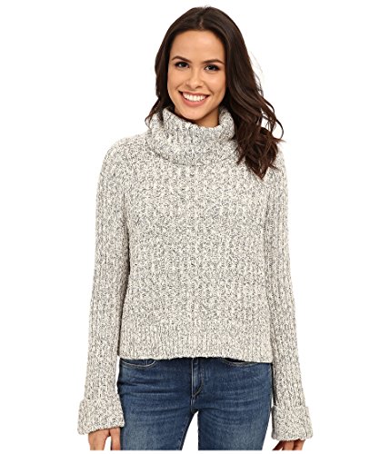 Marled yarn lends subtle dimension to a chunky sweater knit with an oversized turtleneck, long cuffed sleeves and a cropped hem, turtleneck, long cuffed sleeves.