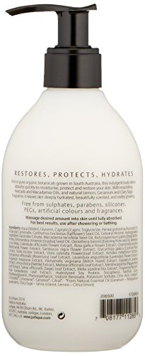 Rich in pure organic botanicals grown in South Australia, this indulgent body lotion absorbs quickly to moisturize, protect and soften your skin. With nourishing Avocado and Macadamia Oils and natural Lemon, Geranium and Clary Sage fragrance, it leaves skin deeply hydrated, beautifully scented, and visibly glowing. Free from soaps, sulphates, parabens, silicones, PEGs, artificial colours and fragrances.