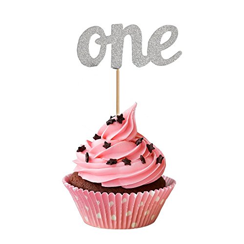 KAZIPA 50PCS One Birthday Picks, One Cupcake Toppers for First Birthday Party, Baby Shower Decoration, DIY Party Favors -Silver