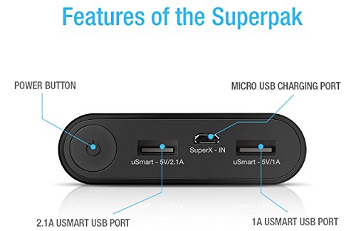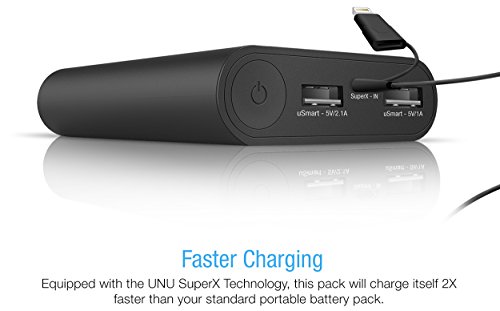 -. Feature : UNU is Amazon’s #1 High Tech Mobile Power Provider. Superpak is designed by UNU, the innovative award-winning team, based in Silicon Valley, California. / Smallest foot P.R.Int versus its powerful 10,000mAh battery core which can charge iPhone 6 up to 350%+, iPhone 6 Plus 250%+, iPhone 5/5S 400%+, Galaxy S5 250%+ OR Galaxy Note 4 200%+. / Featuring uSmart charging technology, the Superpak can automatically IDENTIFY and MATCH your devices max charging speeds for optimized charging. (1 Port up to 2.1A, 1 Port up to 1.0A). / Equipped with SuperX 2.4A input charging technology, it doubles the battery pack self-charging speed and reduces Superpak self-charging time by up to 50% (Only 5-6 hours). / World’s ONLY Made for iPhone Certified Battery Pack (works with iPhone 6 and any IOS systems) with 2-in-1 Micro USB + 8 Pin MFI certified Apple lightning cable enables user to charge any compatible device without carrying an additional cord.