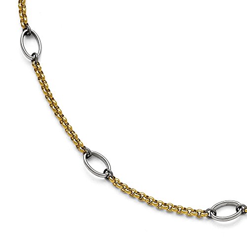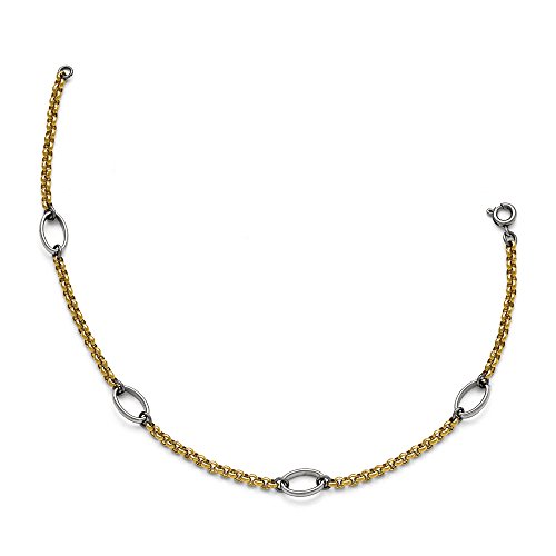 -. Title : Stainless Steel and Gold Tone Plated Oval Station Anklet, 9.5 Inch