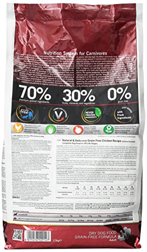 -. Feature : Complete Dog Food for All Life Stages / Grain-Free, Gluten-Free / High level of fresh protein, limited carbohydrate, low fiber formulas