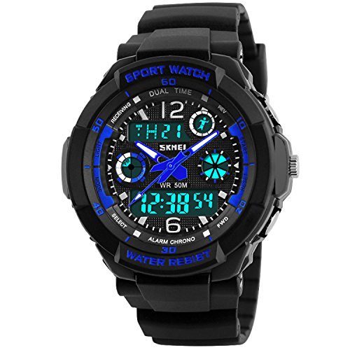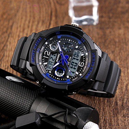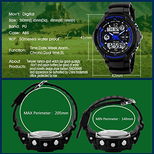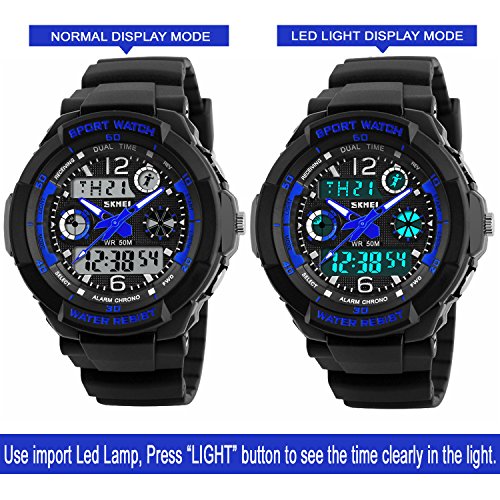 Takyae Children Kid Watches LED Digital Quartz Watch Boy And Girl Student Multifunctional Waterproof Wristwatches S - Blue