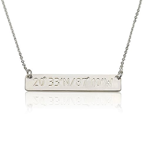 -. Title : Silver Bar Necklace, Name Bar, Latitude Longitude Necklace, Coordinate Necklace, Personalized Bar,custom Bar Necklace,location Necklace