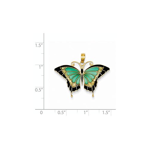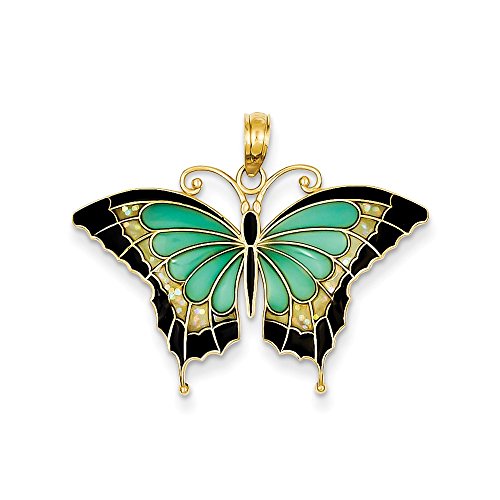 14K Aqua Stained Glass Wings Butterfly Pendant with Acrylic