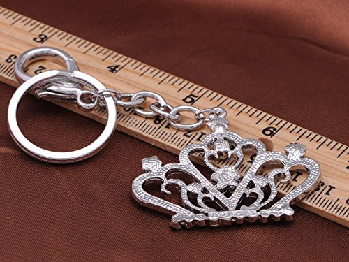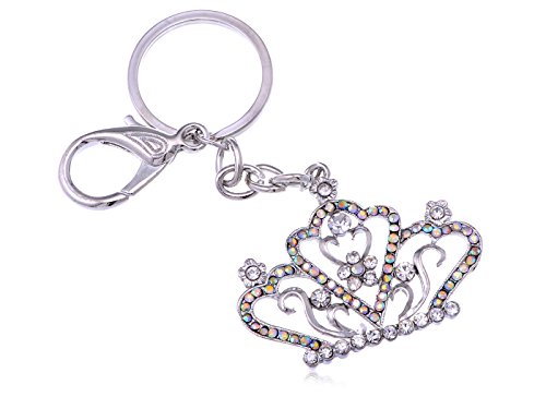 Alilang Silver Tone Iridescent Clear Colored Rhinestone Flower Crown Tiara Ring Key Chain, Silver,