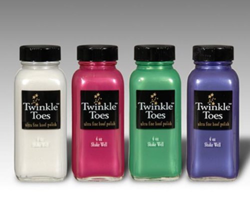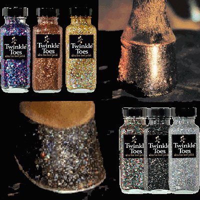 Studio : J. Mitton and Associates Inc. Publisher : J. Mitton and Associates Inc. Binding : Sports Product Description Twinkle Toes Satin Hoof Polish Eye catching, hoof polish makes hooves dance with a flickering light. Extraordinary new grooming product for all disciplines of riders from trail to show. Awesome under lights. Colors: Black, Clear, Snow White, Gold, Green, Pink, Purple or Silver This product available for domestic shipment only. We are sorry but this product can not be shipped via air. 0