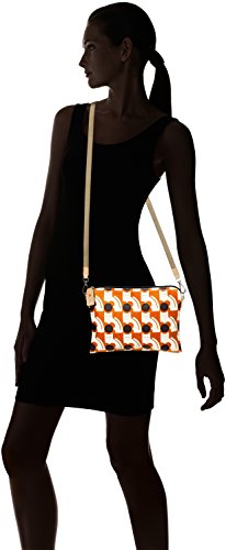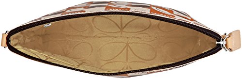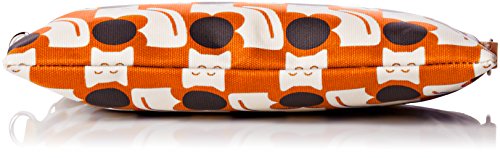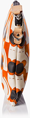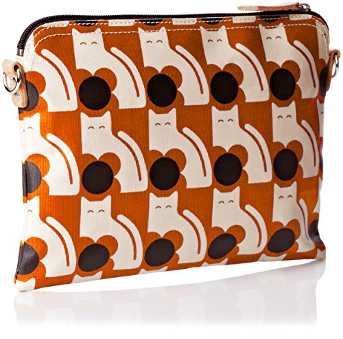 Matte laminated travel pouch in the 'poppy cat' print with leather trims and contrast colored zip closure. Inside details include linear stem jacquard lining, small leather logo card holder pocket, small patch pocket for a passport and mobile slip pocket. Silver colored hardware. Includes a detachable long strap in double sided webbing that allows the bag to be worn as a shoulder bag or across the body (length 112cm) or detached and used as a pouch or clutch.