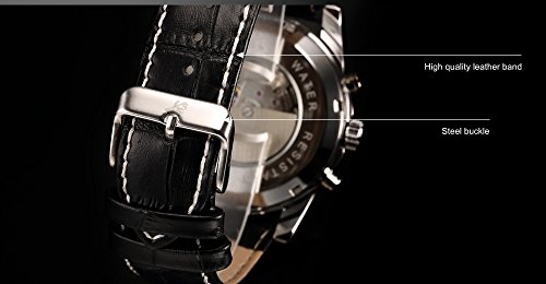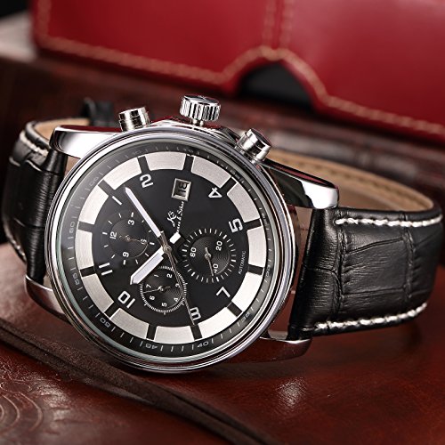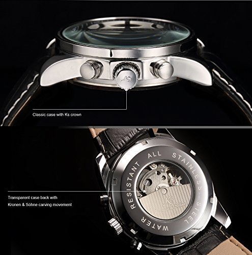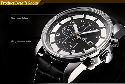 KS KS179 맨즈 자동 감기 기계식 아날로그 날짜 월표시 블랙 레더 밴드 손목시계