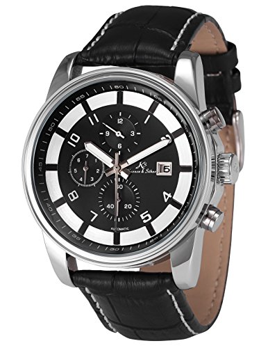 원본상품명: KS KS179 メンズ 自動?き機械式 アナログ 日付月表示 ブラック レザ?バンド 腕時計