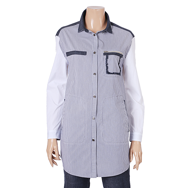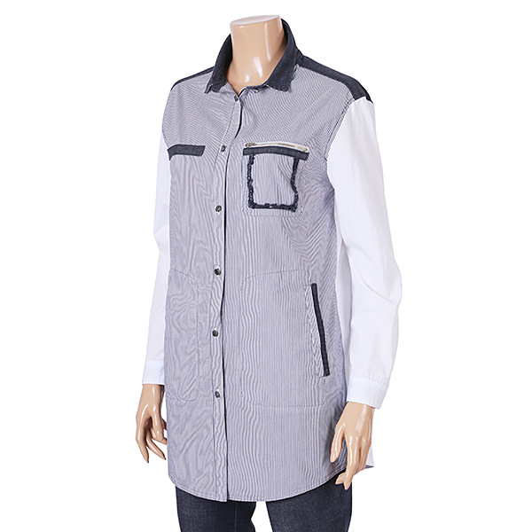 젊고케쥬얼스러운투톤의스트라이프블라우스