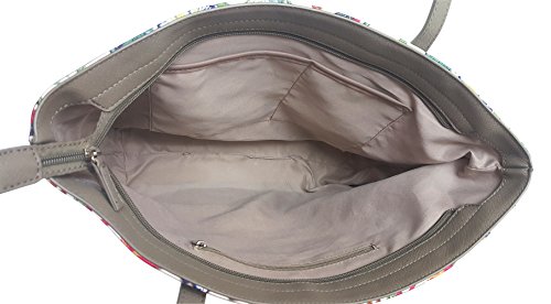 - *STRUCTURE : Beautiful embroidery flower design print on embossed PU faux leather with silver hardware. Top Zipper Closure. Soft fabric lined interior with open pouches & a zippered pocket easily fits your wallet, phone, makeup, keys, and much more.