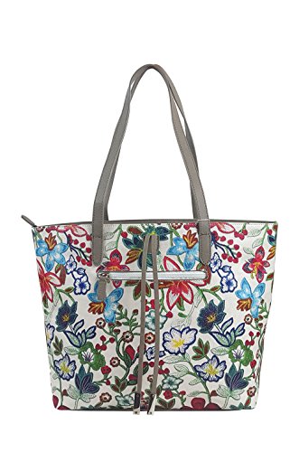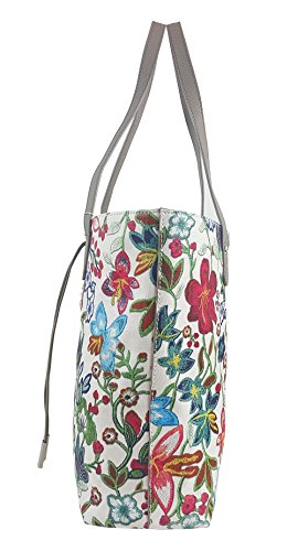 - * DESIGN: This classic tote bag is made from quality PU faux leather combined with silver hardware which gives this bag a elegant look. The beautiful flower embroidery design print front & back makes it more fashionable and energetic.