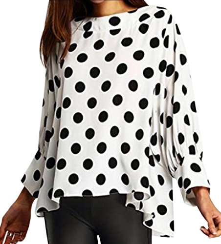 -. Title : Tootess 女性の長い袖のポルカラインラウンドネックブラウス・トップ・ドット