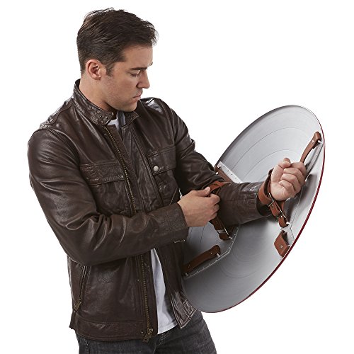 -. Feature : Full 1:1 ratio metal shield with 24-inch diameter / Premium design and finish featuring iconic red, white, and blue styling / Adjustable straps allow users to wear like Captain America / 75th Anniversary branded straps and premium packaging / Includes 1 shield