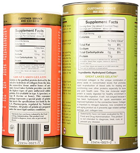 -. Title : Great Lakes Gelatin, Kosher, 16-Ounce Cans of Unflavored & Collagen Hydrolysate