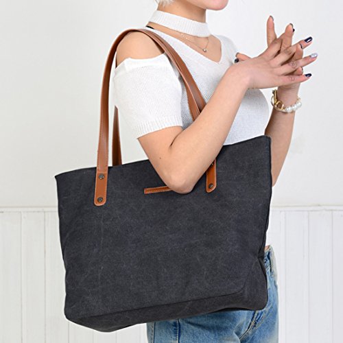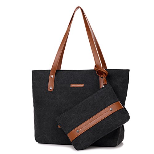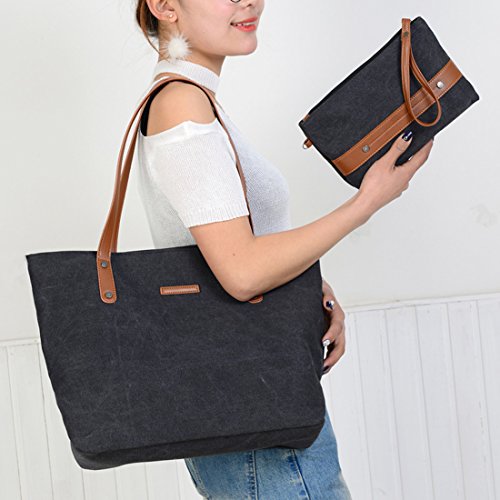 Qyoubi Women's 2 Pieces Stylish Canvas Purses and Handbags Shoulder Top-Handle Tote Bags Wallet Sets