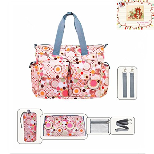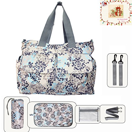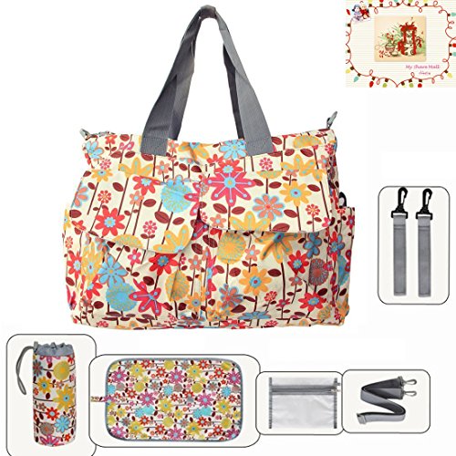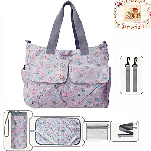 Information: The MSM Original Floral Designer Diaper Tote Bags 6 Pieces Set is an unmatched value, and the complete solution for taking baby on the go. The large tote comes with a matching changing pad, waterproof pocket, insulated bottle bag - everything a busy mom needs. All accessories include over the shoulder straps and stroller straps so they can be attached anywhere - on the bag or on the stroller. The numerous interior and exterior pockets in diaper bags organizes all the necessities for you and your baby such as diapers, bottles, sippy cups, clothes, toys, and snacks, while keeping your phone, keys, and wallet safe and dry.