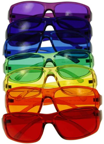 Studio : BioWaves Publisher : BioWaves Product Description We naturally associate colors with emotions and feelings. We say, "I'm green with envy," or "I see red!" or "You're yellow bellied," or "I'm feeling blue," or "I'm in a black mood." With color therapy, each color is associated with particular emotions and feelings. Each color has a unique frequency and vibration. When a particular color frequency enters the body, by wearing color glasses, for example, that vibration can have an effect on us. It is easy to become out of balance. The appropriate color may allow our feelings and emotions to return to a balanced state and we'll feel better. Color Associations Red: Strength, pioneering spirit, courage, alertness, sense of power, vitality, overcoming negative thoughts Orange: Social confidence, cheerfulness, resourcefulness, enjoyable relationships Yellow: Concentration, mental clarity, optimism Green: Balance, peace, stress reduction, calmness, self control, hope Aqua (Turquoise): Openness, confidence, relaxation, soothing feeling, sensitivity Blue: Mental relaxation, peace, calmness, vitality, creativity, clear communication Indigo: Serenity, imagination, accurate perception, understanding, strong deep sleep Violet (Purple): Inspiration, calm nerves, reduced irritation, creativity, beauty Magenta: Relaxing, soothing, gentle, balance of emotions (both over and under emotional) Baker-Miller Pink (Rose): Calming aggression, relaxation, stress relief, appetite suppressant Outside of mood enhancing, light/color therapy may have effects on a wide variety of health concerns or conditions. Click on each color to learn more! 0