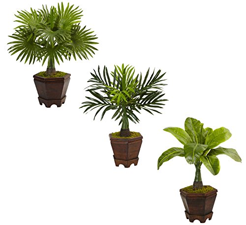Nearly Natural Assorted 16.5" H Mini Artificial Palm Trees, Green, 3 Piece