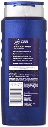 FOR MEN who want cooling refreshment and the 3-in-1 benefit of a body, hair and face wash, all in one. Cool 3-in-1 Body Wash rejuvenates your senses with a refreshing scent while our icy blue gel with menthol cleans and invigorates your skin, leaving you feeling fresh and clean. Especially developed for men Cleanses without drying out the skin Lathers well & rinses off easilyFeature