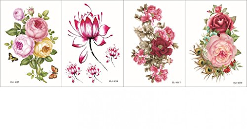 GGSELL GGSELL waterproof and nontoxic 4pcs in one package,it including 4pcs colorful flowers,roses,peony and lotus temporary tattoos