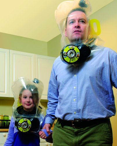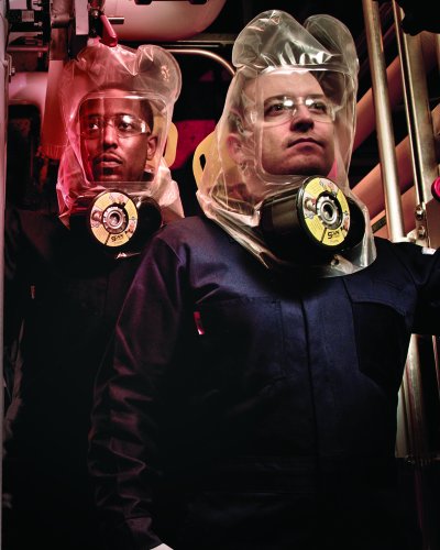-. Feature : Integral blower with automatic actuation / Panoramic field of view / 30 minutes of continuous protection / No nose cup or mouth bit / Trusted, proven protection against airborne threats and carbon monoxide