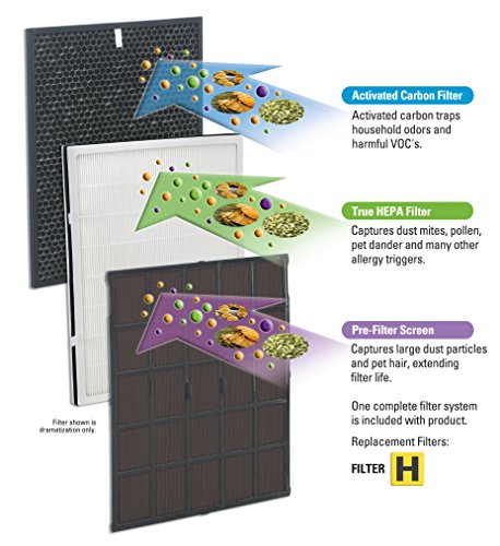 Multiple level cleaning system that includes a True HEPA filter, activated carbon filter and Pre-Filter Screen that all help to improve indoor air quality