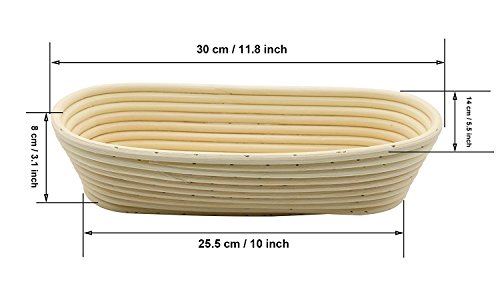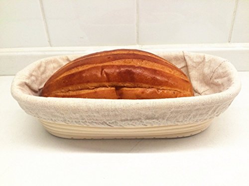 Stormshopping 11.8 inch Oval Long Banneton Brotform Bread Dough Proofing Rising Rattan Basket & Liner
