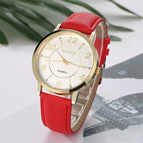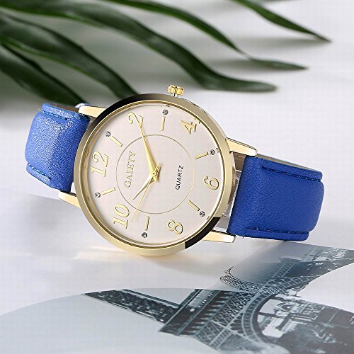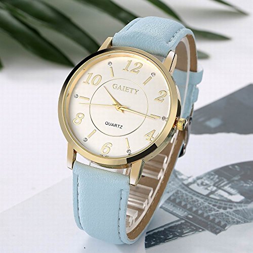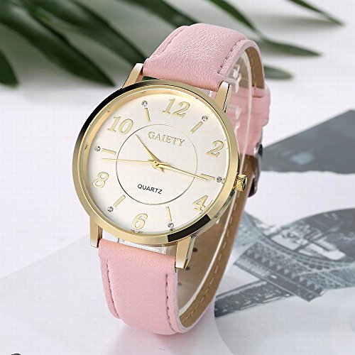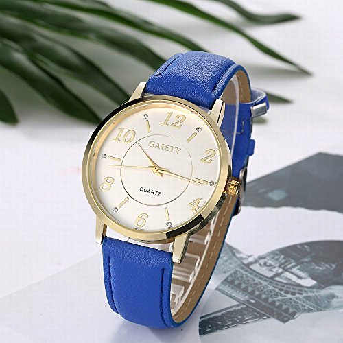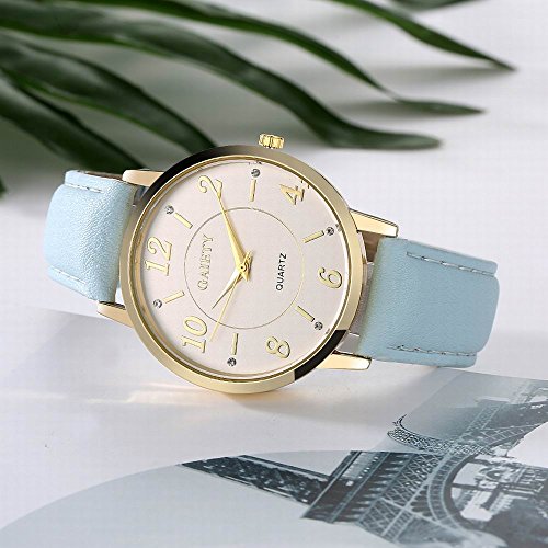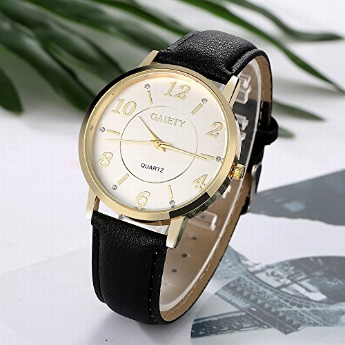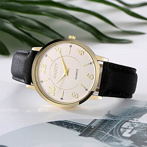 -. Feature : Diameter 1.57 inch round gold watch case with diamonds / 0.7 inch wide, 9.45 inch long leather band with classic buckle / Analog quartz movement for time-keeping / Best gifts for women/girls in Christmas, birthday, Mother's Day, Valentine's Day, wedding etc. / 30m water resistant, withstands for hand and face washing, not suitable for diving, bathing, swimming