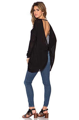 A lightweight hacci-knit top features a drapey, relaxed-fit front and an artfully twisted open back to make a comfy, ultra-stylish addition to your wardrobe. Layer this oversized piece with another top for cool contrast, or wear it alone to showcase plenty of eye-catching skin. 28" length. Semi-sheer; base layer recommended. Boatneck. Long sleeves. Raw-edge seams. 73% rayon, 24% polyester, 3% spandex. Machine wash cold, dry flat. By Free People; imported.Feature